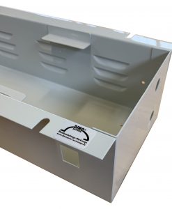 Beleuchtungskasten zum Aufsetzen auf eine Strahlkabine (der Beleuchtungs-Halterungseinsatzkasten SKB 1365 RELK1 passt genau in diesen Beleuchtungskasten, auch die Lochbohrungen sind bereits vorgesehen), 18 Kühlrippen auf einer Längsseite, Öffnung für Schalter auf anderer Seite, LxBxH innen=734x163x112 mm, LxBxH außen=738x214x115 mm, Gewicht 3.650 gr.