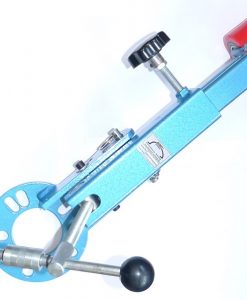 Radlauf-Aufweitgerät Standard, zum Anlegen und Ausstellen von Kotflügelkanten (z.B. bei Tieferlegungen und Einbau breiterer Reifen), für 4-und 5-Loch-Radnaben von 95-120 mm Lochkreis (Radnabenplatte mit 8 Langlöchern Länge 25 mm, davon 5 Stück mit Breite 15 mm und 3 Stück mit Breite 13 mm), leicht und einfach konstruiert für den gelegentlichen Einsatz im Kfz-oder Hobbybereich, Spindel um 90 mm verstellbar, Durchmesser Spindel 16 mm, Lieferung incl. 5 Stück Unterlegscheiben für die Spindel (Achtung: Diese Konstruktion ist anfällig gegen Verschleiß und muß daher laufend kontrolliert werden), Länge Drehhebel 240 mm (mit Kunststoff-Griffkugeln an den Enden), Auslegerarm um ca. 150 mm ausziehbar, Hebelarm der Formrolle um 180° schwenkbar (die Einstellung muß vorsichtig vorgenommen werden, da die Konstruktion gegen die Radlaufkanten stossen und das Fahrzeug beschädigen kann), Synthetik-Formrolle (Breite 70 mm, Durchmesser 80 mm), LxBxH (Auslegearm eingefahren)=535x240x250 mm, Gewicht 7.000 gr., Lieferung im Karton zum Zusammenschrauben, keine CE-Zulassung