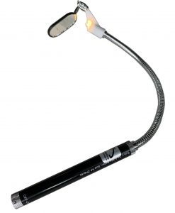Sonderposten Ausstellungsstück: Inspektions-und Kontrollspiegel mit flexiblem Stahlarm und Beleuchtung (auch nur als Leuchte nutzbar), Gesamtlänge 520 mm, Durchmesser Arm 9 mm, Durchmesser Haltebereich 16 mm, Spiegelgröße incl. Kunststoff-Rahmen 27×50 mm (oben und unten gerundet), Gewicht 168 gr. (incl. Verpackung 224 gr.), durch den flexiblen Stahlarm kann die Leuchte in alle Bereiche hineingedreht werden, Spiegel ist durch spezielles Drehgelenk in jede Richtung drehbar, incl. Halteschlaufe, 2 Stück AA-Batterien (2,2 Volt, 0,25 A) zum Betrieb notwendig (nicht im Lieferumfang beinhaltet), kann auch ohne Spiegel nur als Leuchte genutzt werden (Spiegel kann man abschrauben), ideal für schwer einsehbare Bereiche, für Heimwerker, Handwerker und Industrie, Lieferung in Blisterverpackung, LxBxH=535x90x23 mm