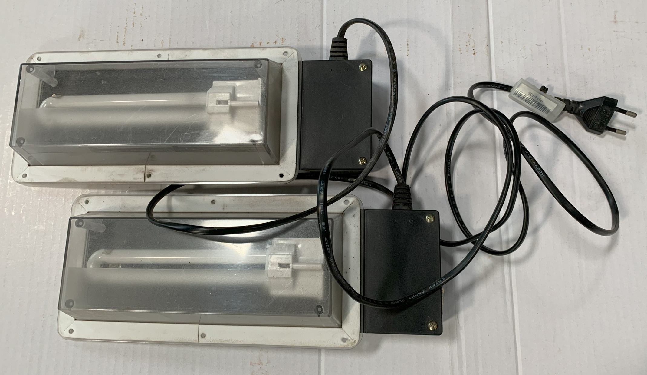 Sonderposten benutzt, schmutzig, funktioniert nicht (warum ist nicht bekannt, Ersatzteile leider nicht verfügbar, Leuchtmittel schon): Komplette Leuchteinheit für Montage von außen als Kombipaket (2 Leuchten mit einem Stecker), 230 Volt Leuchtstoffröhre (ausreichend für eine größere Strahlkabine), Gehäuse aus Kunststoff, Einbaumasse 2xLxB= ca. 207-210 mm x ca. 87-90 mm, LxBxH (je Leuchte)=293x114x67 mm, Gewicht ca. 870 gr.