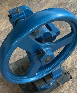 Sonderposten, Ausstellungsstück, neu und unbenutzt: Dornpresse mit großem Drehrad, massives Modell, max. 800 kg, 30 mm Druckhub, max. freie Höhe 140 mm, Durchmesser Kurbelrad 320 mm, LxBxH ca.=380x380x660 mm, Gewicht 38 kg, angegebene Daten alle nur circa, mit Lack-und Oberflächenmängeln