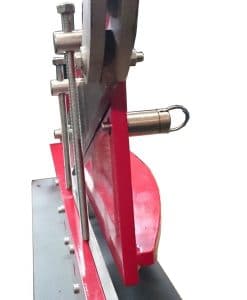 Tafelschere Profi, neue kurze Ausführung aus Stahl, 500×1,5 mm, max. Blechdicke 1,5 mm bei 400 MPa, incl. Fußplatte, 2 Stück ausdrehbare Gewindestangen als Niederhalter, Schnittlänge ca. 430 mm, Blech kann nach hinten durchgeschoben werden (die rechte Seite taucht jedoch leicht unter der Haltekonstruktion unter und ist nach dem Schneiden ev. nicht mehr ganz plan), Gewicht 70 kg, Achtung: Aufgrund der Herstellung, Lagerung und dem Versand sind Lackmängel möglich.
